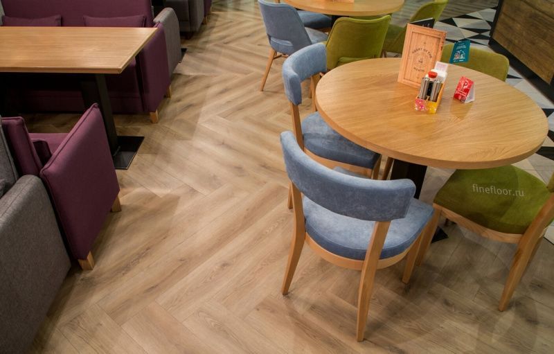 3. Простота установки и замены. ПВХ-плитки FineFloor легко устанавливаются и заменяются, что делает их идеальным выбором для коммерческих помещений с высокой проходимостью.