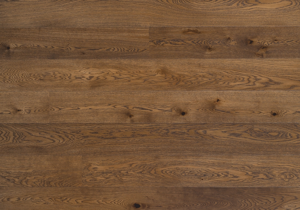Однополосная паркетная доска из дуба слегка обработанная щеткой и покрытая коричневым маслом. Под воздействием ультрафиолетовых лучей цвет становиться более насыщенным.