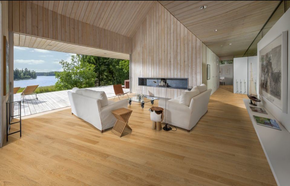 Приглушённые, мягкие тона паркетной доски Карелия из коллекции Dawn наполнят помещение тёплым летним ароматом скандинавского леса. В коллеции собраны светлые декоры, как однополосной паркетной доски из качественного дуба, так и трёхполосной.