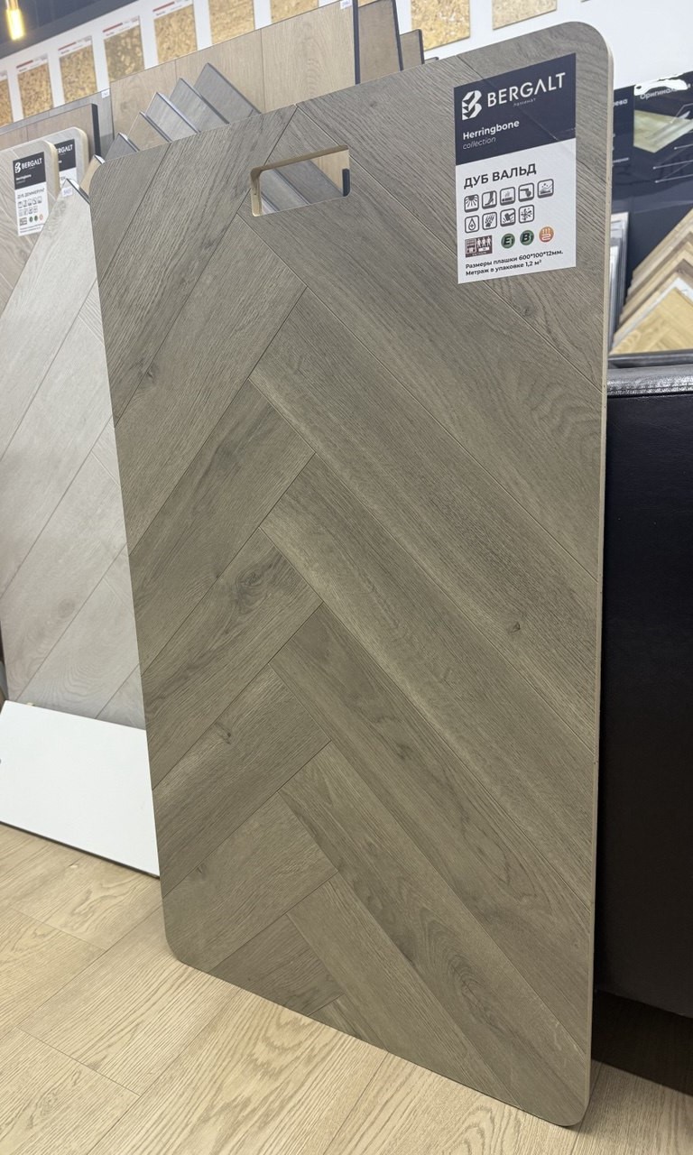 Hb001-05 Ламинат Bergalt 12/33 Herringbone Дуб Вальд 600*100*12 (1,44) 4V