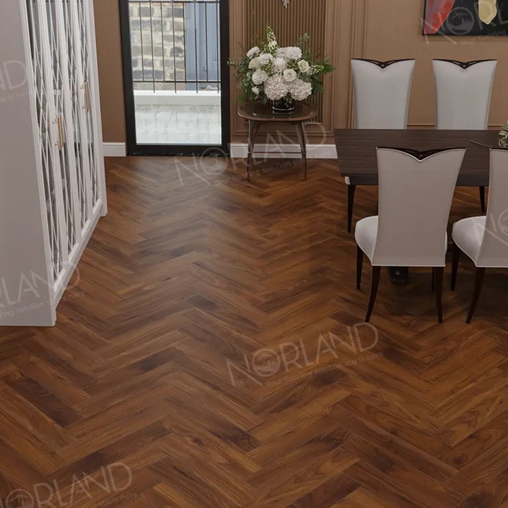 LF303-19 Ламинат Norland 8/33 Herringbone Elegant Орех Кипр 600*100*8 (1,92)
