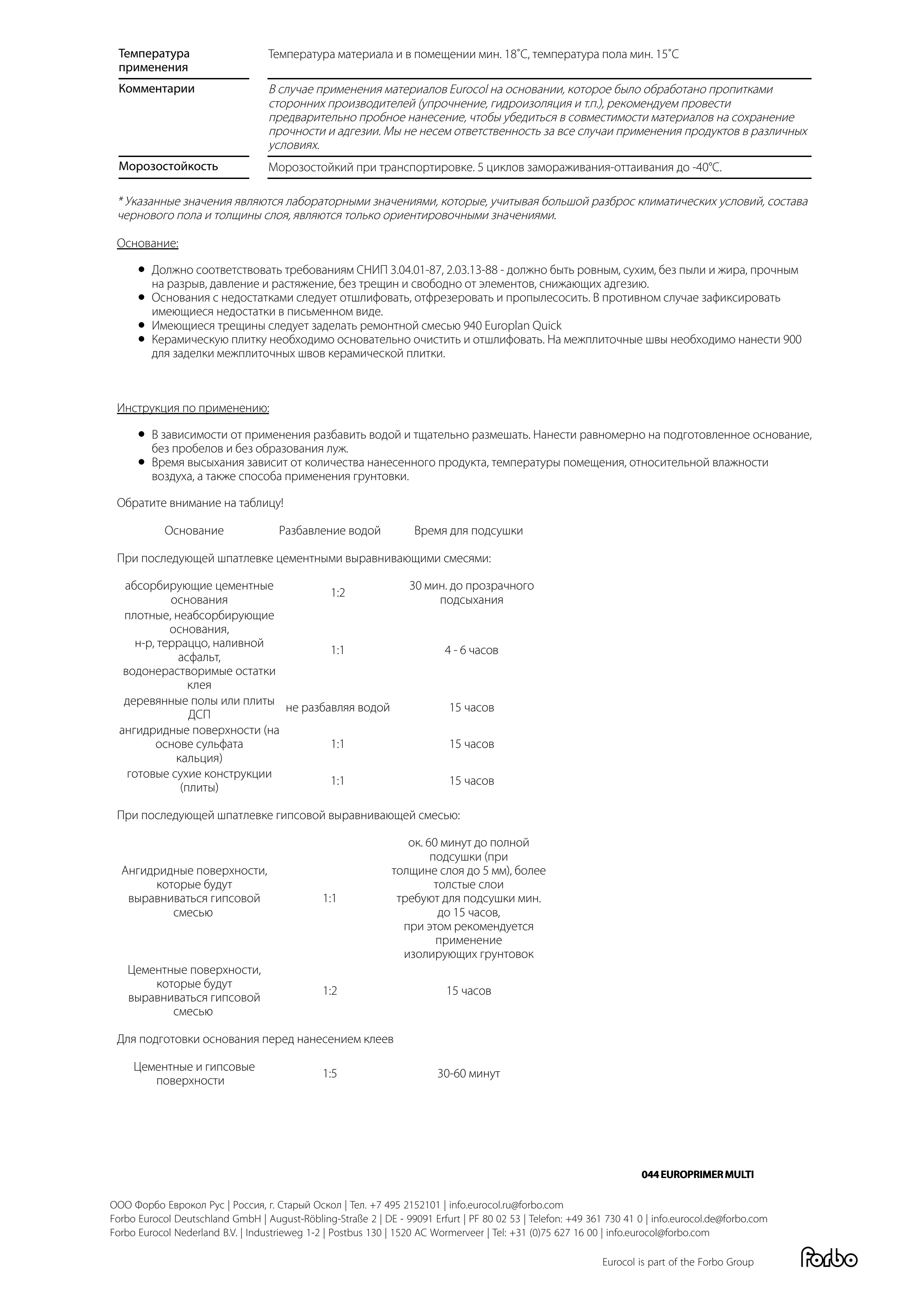 Универсальный грунт-концентрат Forbo 044 Europrimer Multi (10кг)