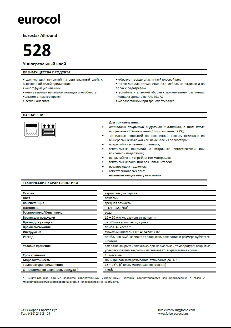 Клей для виниловых покрытий Forbo Eurocol 528 Eurostar Allround