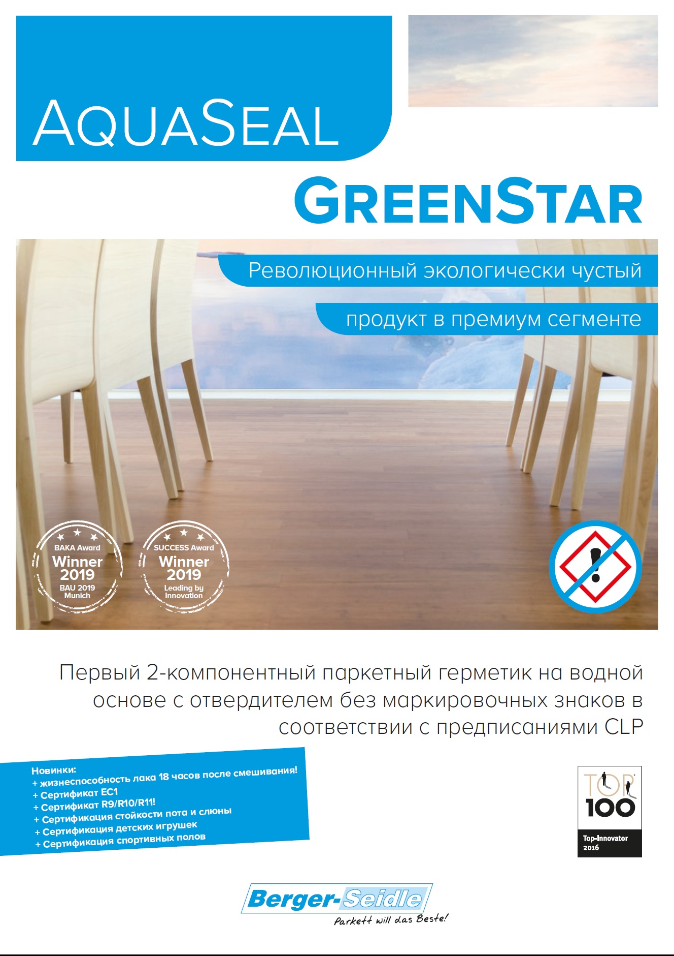 AquaSeal® GreenStar – универсальный двухкомпонентный полиуретановый лак на водной основе премиум-класса, обладает высокой прочностью лаковой плёнки.