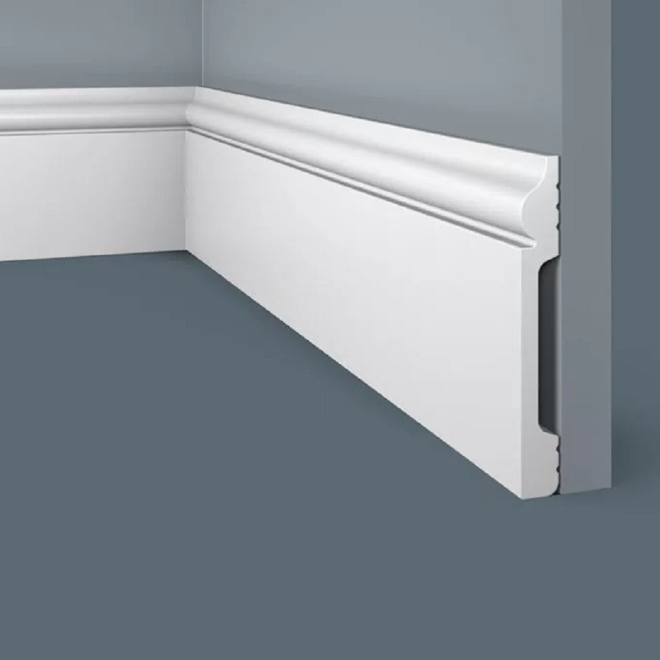 Плинтус Cosca Decor изготовлен из ударопрочного экополимера – это композит с добавлением светостабилизатора. Материал изделия уже огрунтован в своей массе, благодаря чему его можно не окрашивать. Он сохранит белый цвет и не пожелтеет со временем. Красить также легко, с экономией на краске, так как грунтовка уже есть!