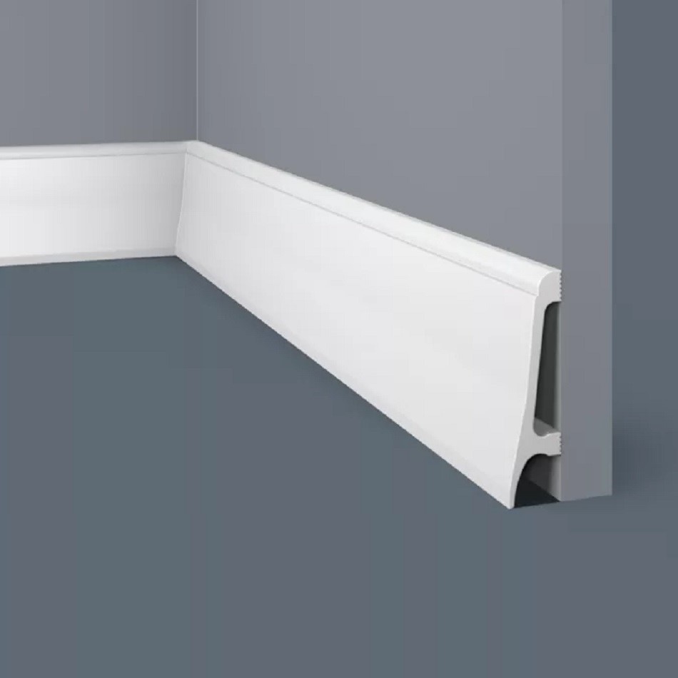 Плинтус Cosca Decor изготовлен из ударопрочного экополимера – это композит с добавлением светостабилизатора. Материал изделия уже огрунтован в своей массе, благодаря чему его можно не окрашивать. Он сохранит белый цвет и не пожелтеет со временем. Красить также легко, с экономией на краске, так как грунтовка уже есть!
