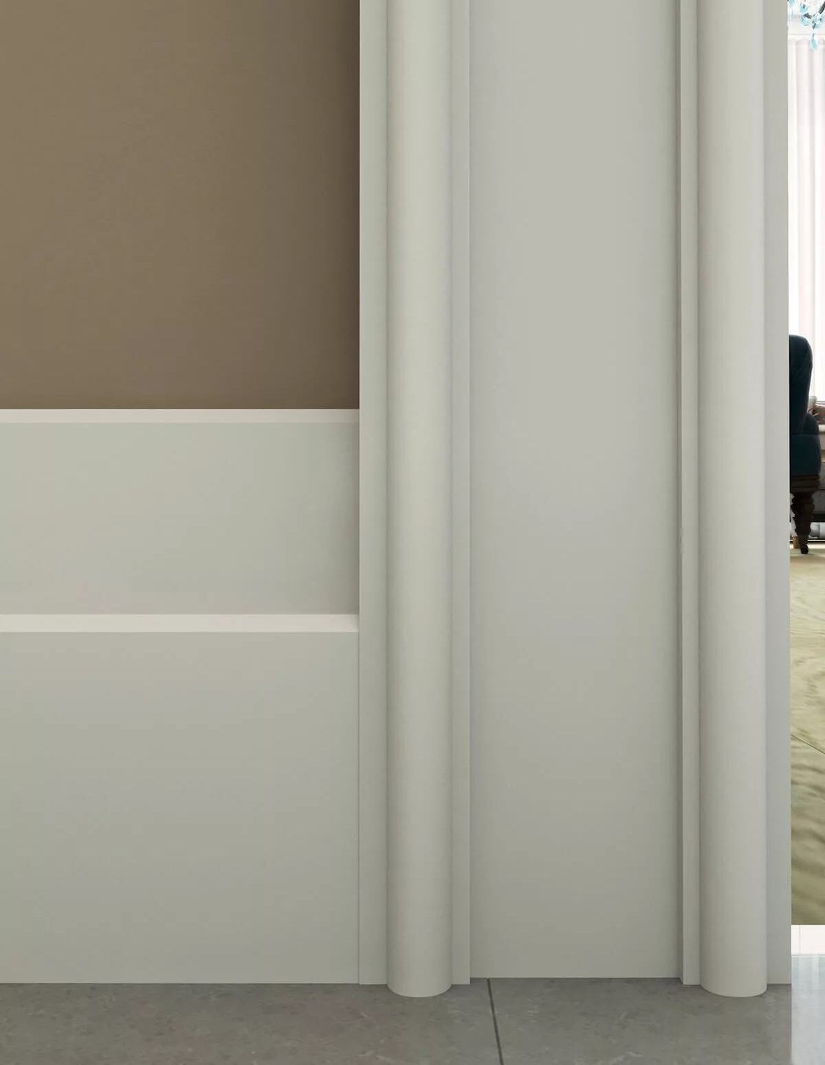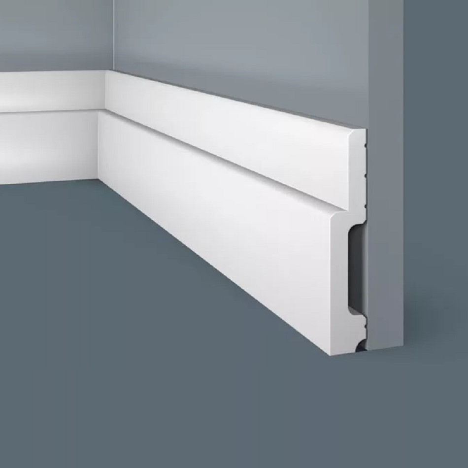 Плинтус Cosca Decor изготовлен из ударопрочного экополимера (композит с добавлением светостабилизатора). Плинтус уже загрунтован, благодаря чему его можно не окрашивать - он сохранит белый цвет и не пожелтеет со временем. Покрасить его также очень легко с помощью любой водоэмульсионной краски.