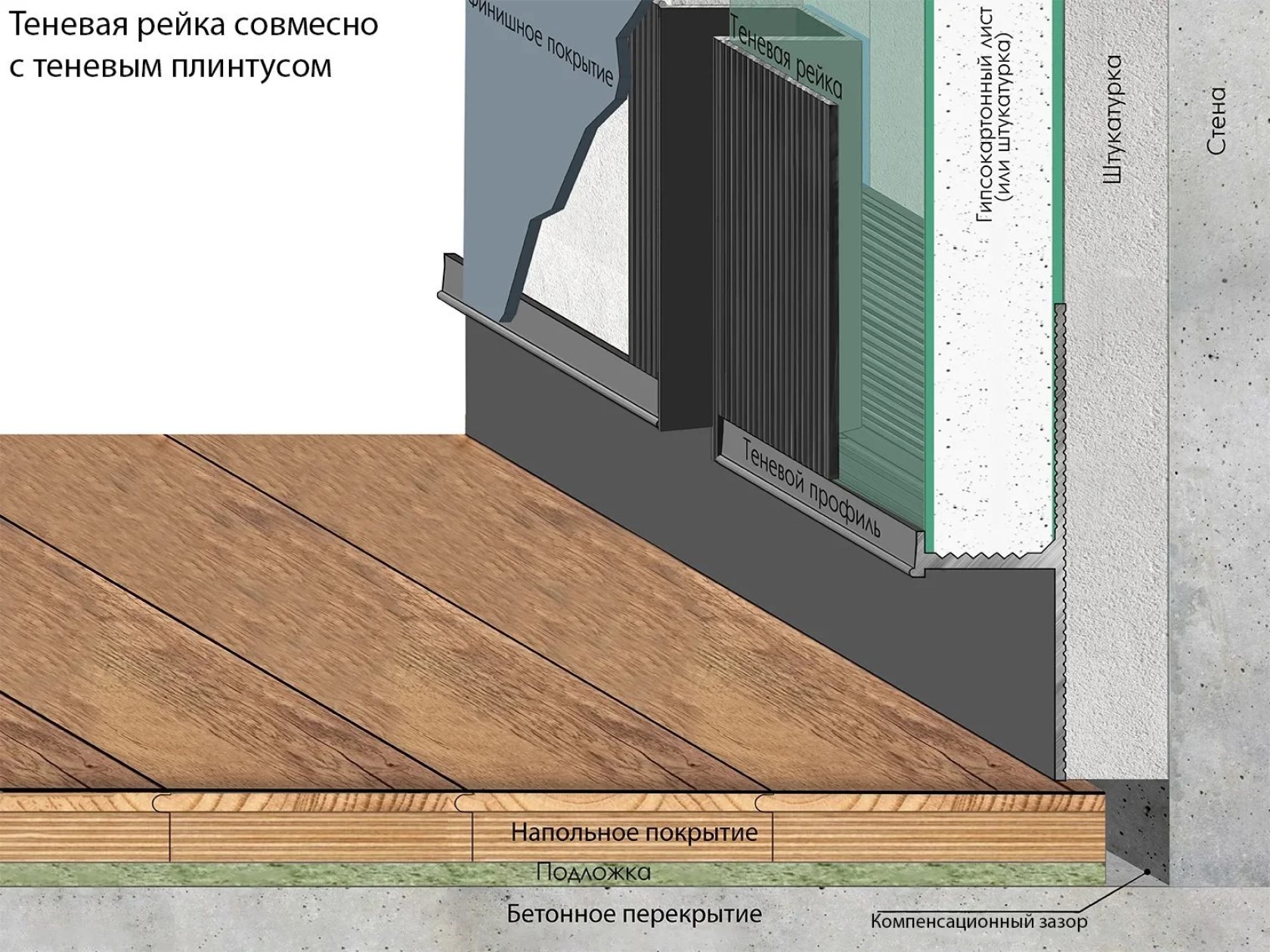Декоративный разделительный профиль для стен и потолка. С помощью теневой рейки можно изменить геометрию помещения, создать дополнительную фактуру стен и зонировать пространство. Профиль создает теневой шов глубиной 10 мм. Теневая рейка идеально стыкуется с теневым плинтусом Laconistiq, создавая общую концепцию современного интерьера. Монтажная вставка FLEX поставляется в комплекте.