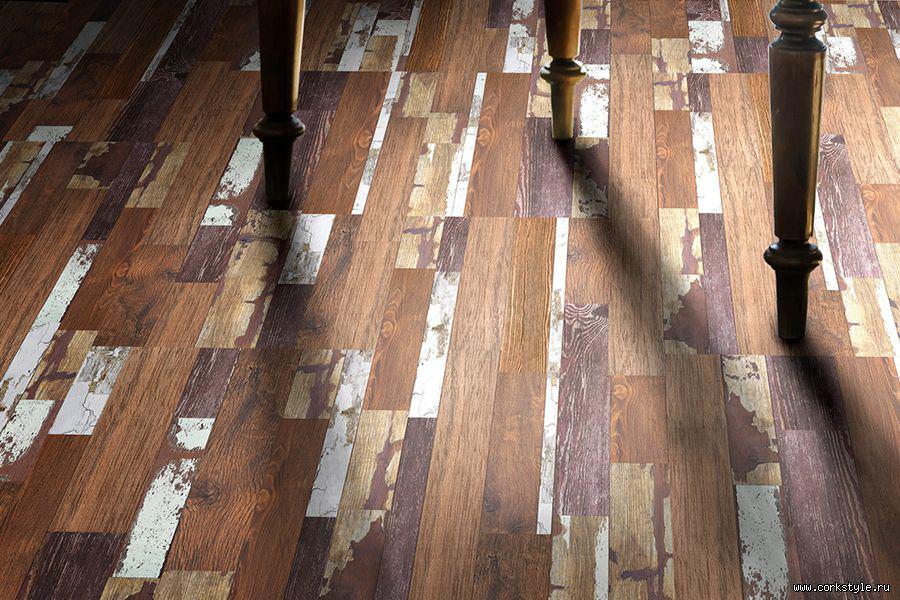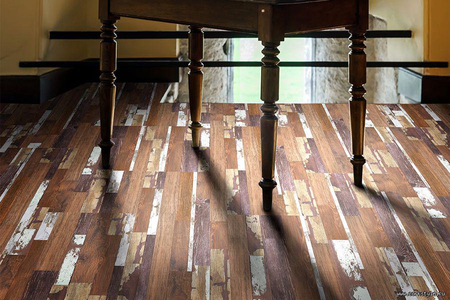 Пробковый пол Corkstyle Loft выглядит элегантно, при этом имитирует старое напольное покрытие из дерева. Необычное сочетание цветов подарит интерьеру необыкновенную индивидуальность, а «состаренность» и фактурность создадут по-настоящему домашнюю атмосферу.