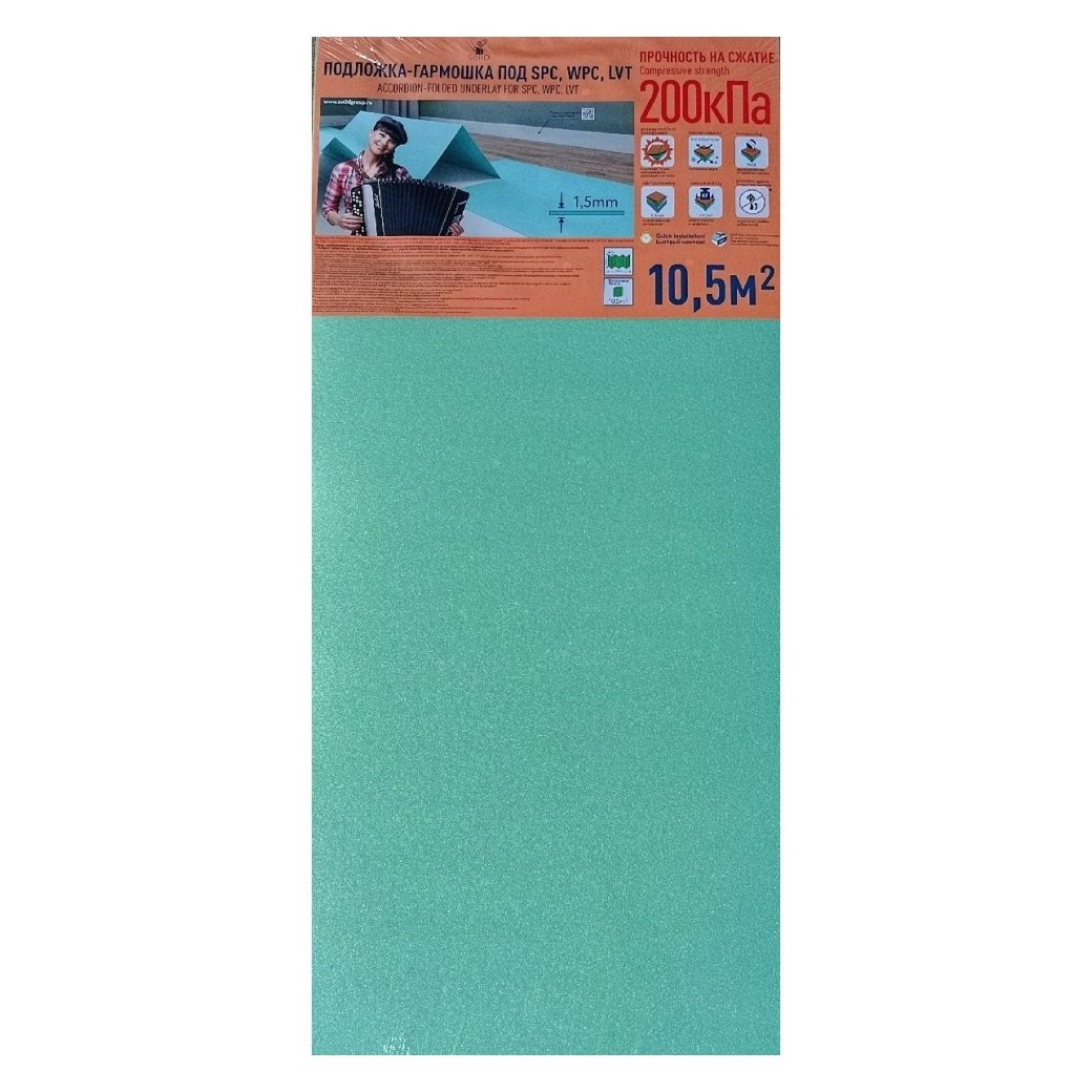 Подложка-гармошка под SPC/WPC/LVT Solid 1050*500*1,5 мм (10,5м2/уп)