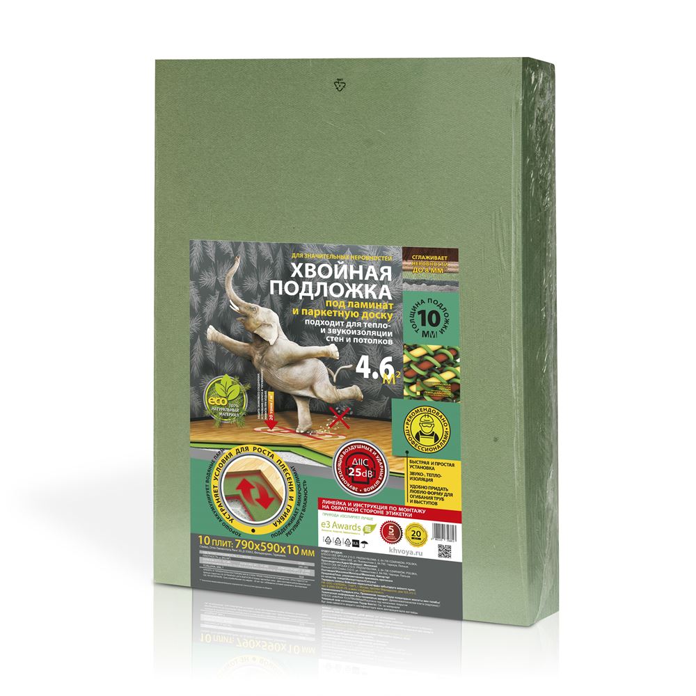 Хвойная подложка под ламинат предназначена в первую очередь для обеспечения комфортной акустической атмосферы в вашем доме. Уложенная под ламинат, половую доску или паркет, подложка из хвои значительно снижает «ударные» шумы, разрывая акустические связи между полом и другими поверхностями вашего дома.