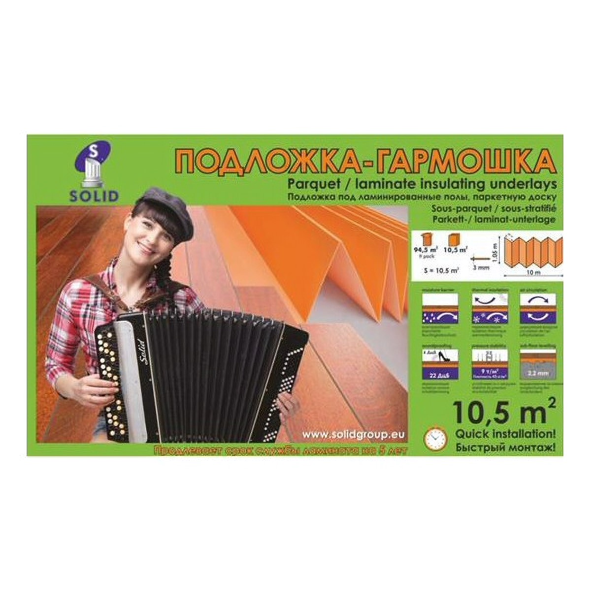 Подложка-гармошка листовая под напольные покрытия 3 мм 1050*500*3 мм (10,5м2/уп)
