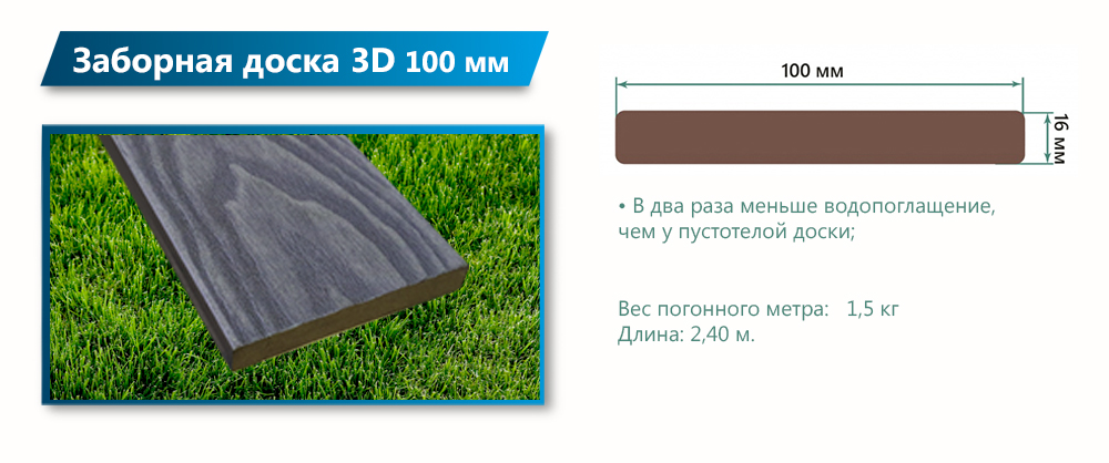 Terrapol Заборная доска 3D полнотелая 2400*100*16 мм