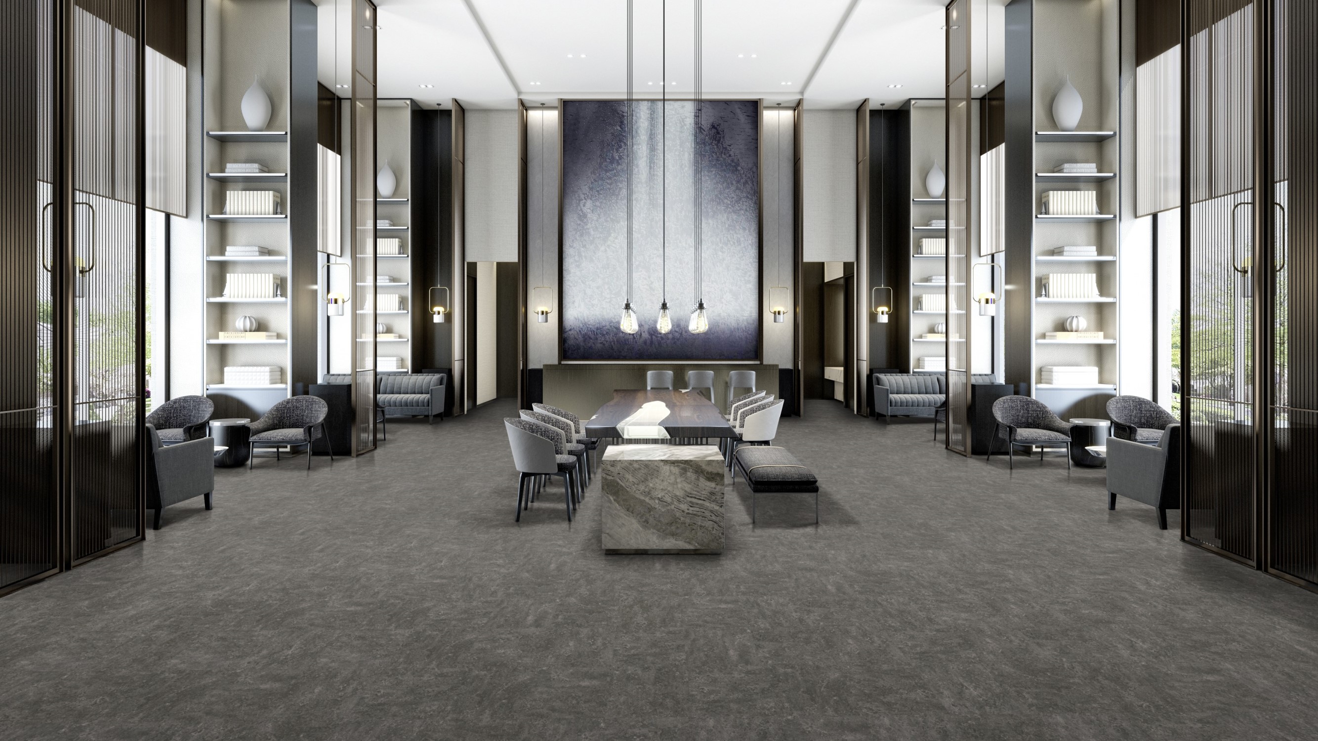 Marmoleum Modular имеет естественный и реалистичный вид и текстуру. Он предлагает широкие возможности для дизайна и множество комбинаций. Цветовая палитра соответствует последним тенденциям. Текстуры с тиснением создают эффект живого пола.