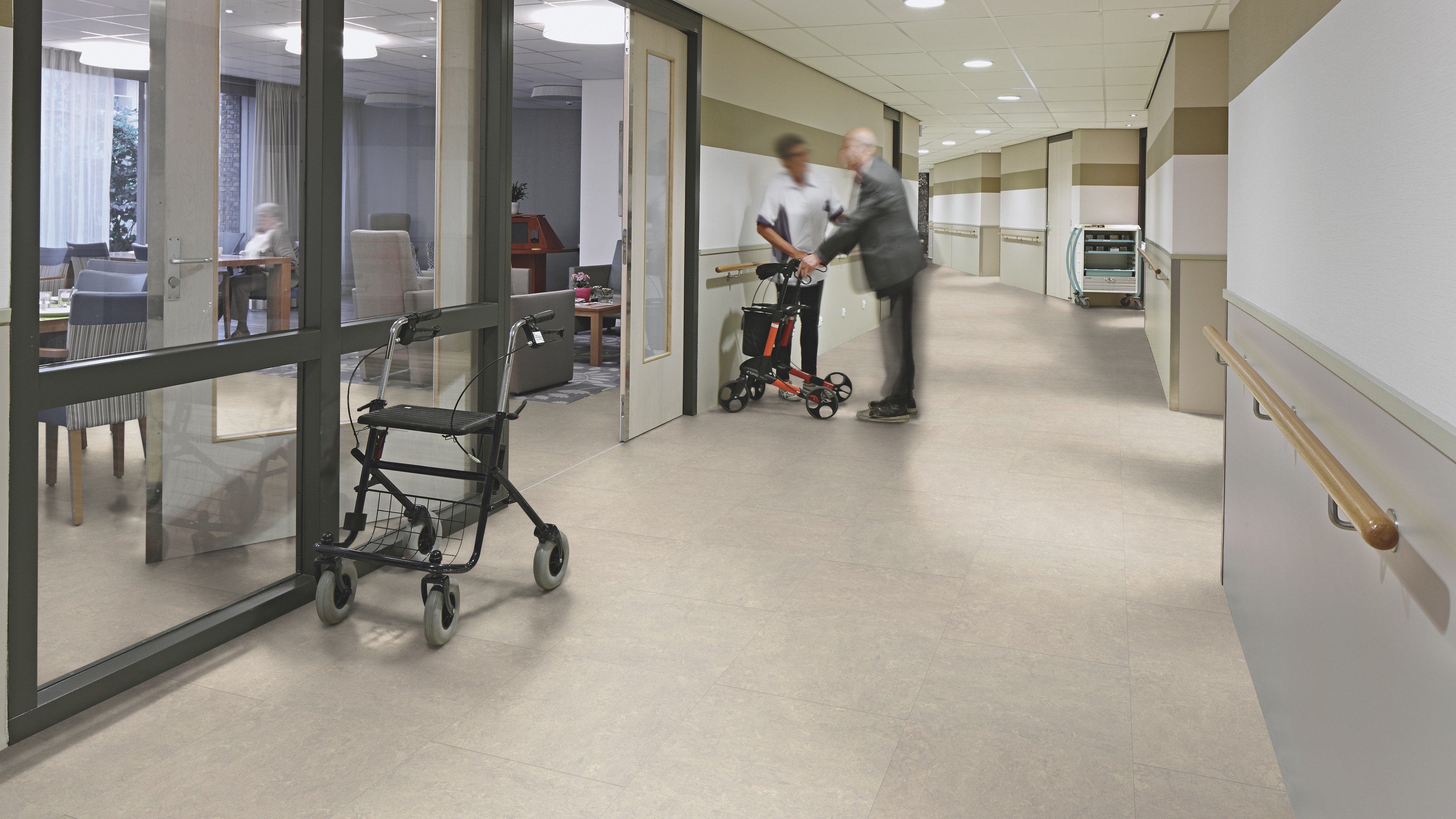 Marmoleum Modular — это износостойкое покрытие, которое сохраняет стабильность размеров. Оно легко чистится и не требует особого ухода. Плитка удобна в использовании: при укладке образуется меньше отходов, отдельные плитки можно заменять без необходимости сварки.